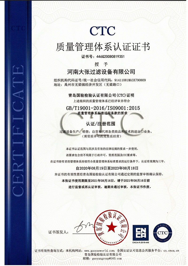 您好!歡迎訪問河南大張過濾設備有限公司官方網站!